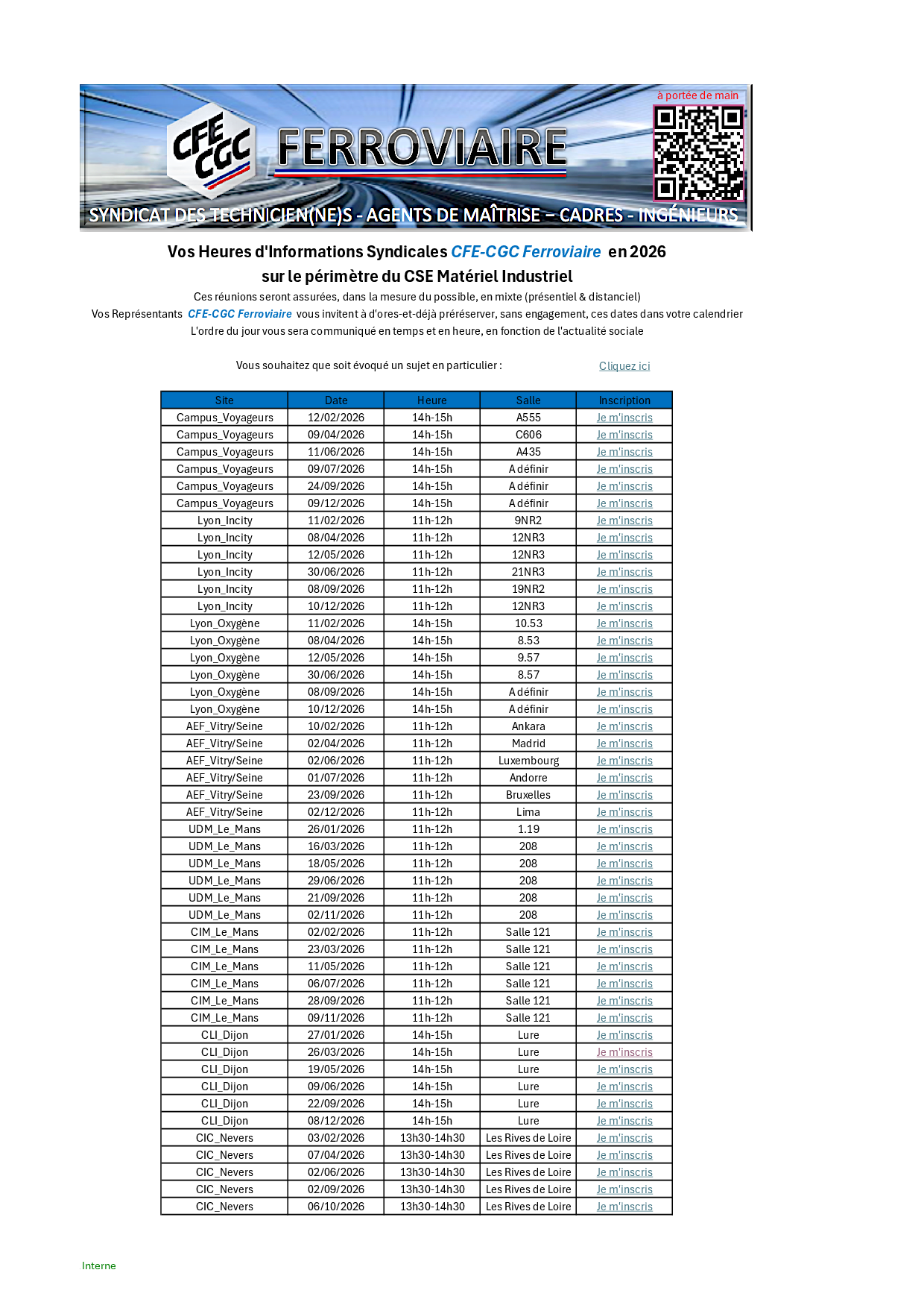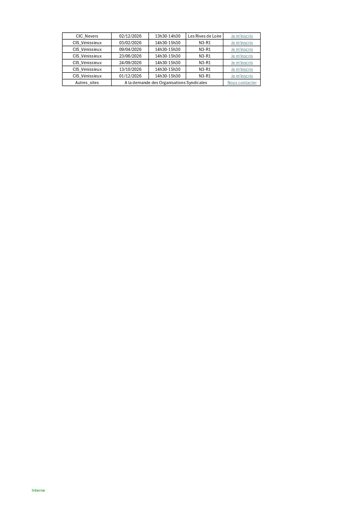 Planning des HIS 2026